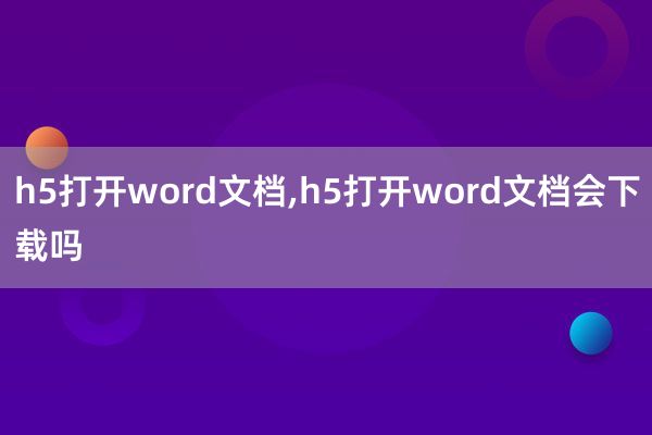 h5打开word文档会下载吗在当今的世界,很多人都会遇