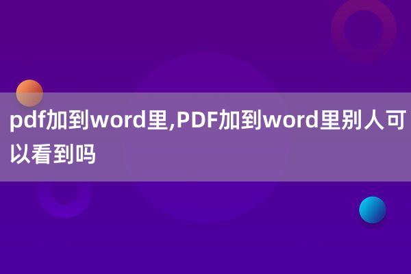 PDF加到word里别人可以看到真人cs基地吗在今天这个数字化的时代,不断有新的技术出现,让一切更加便捷快速,那么,PDF加到Word里别人可以看到吗?答案是:可以!
