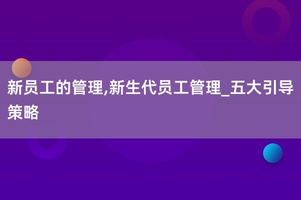 四维度认知新生代员工