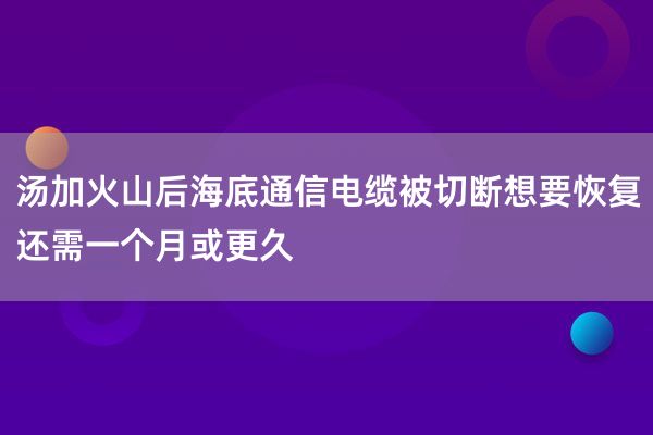 汤加火山后海底通信电缆被切断想要恢复还需一个月或更久