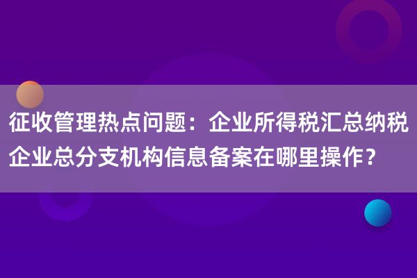 企业所得税汇总纳税企业总分支机构信息备案在哪里操作?