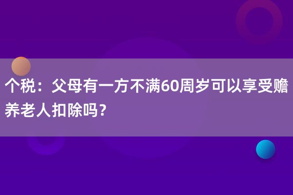 纳税人的父母有一方满60周岁,另一方不满60周岁,可以享受赡养老人扣除吗?