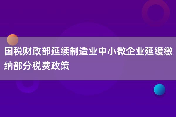国税财政部延续制造业中小微企业延缓缴纳部分税费政策