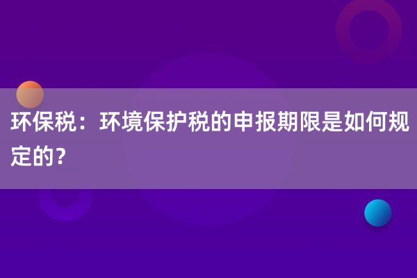 根据《中华人民共和国环境保护税法》规定:环境保护税按月计算,按季申报缴纳。不能按固定期限计算缴纳的,可以按次申报缴纳。纳税人申报缴纳时,应当向税务机关报送所排放应税污染物的种类、数量,大气污染物、水污染物的浓度值,以及税务机关根据实际需要要求纳税人报送的其他纳税资料。纳税人按季申报缴纳的,应当自季度终了之日起十五日内,向税务机关办理纳税申报并缴纳税款。纳税人按次申报缴纳的,应当自纳税义务发生之日起十五日内,向税务机关办理纳税申报并缴纳税款。纳税人应当依法如实办理纳税申报,对申报的真实性和完整性承担责任。