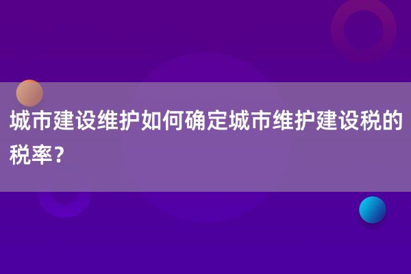 纳税人所在地为市区的,税率为7%;纳税人所在地为县城、镇的,税率为5%;纳税人所在地不属于市区、县城或镇的,税率为1%。城市维护建设税纳税人所在地,除另有规定外,按照纳税人取得登记证照上记载的地址确定。关于市区、县城、镇的范围,应按行政区划作为划分标准。