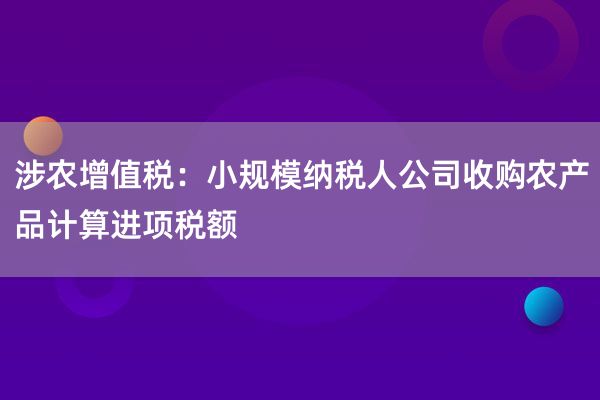 我公司从一家小规模纳税人公司收购农产品用于生产13%税率的货物,并取得对方开具的增值税专用发票,请问可以按10%的扣除率计算进项税额吗?