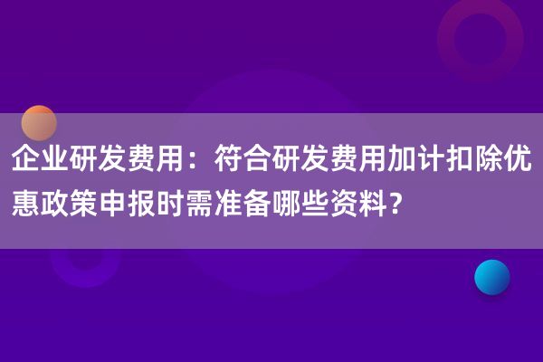 我是一家医药研发企业,符合研发费用加计扣除优惠政策,10月申报时需准备哪些资料?